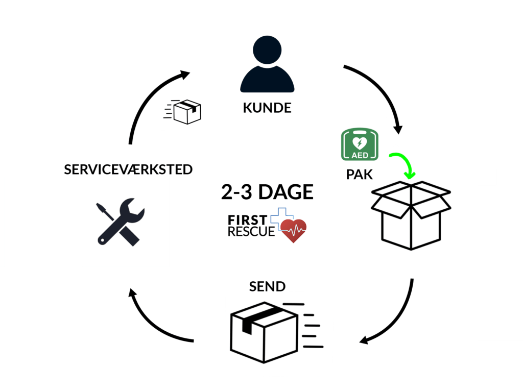 Vi har gjort det nemt for dig. Kontakt os, og vi sender en kasse med beskyttelsesfyld, betalt returlabel og en vejledning direkte til dig. Du skal blot lægge din hjertestarter i kassen og aflevere den hos GLS eller PostNord. I de fleste tilfælde er hjertestarteren retur hos dig indenfor 2-3 dage.